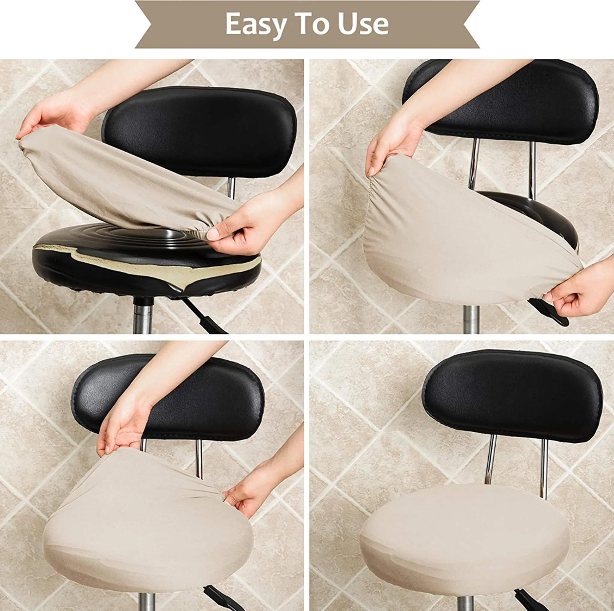 Einfach über Hocker ziehen: das elastische Material passt sich der Größe 30–45 cm an und verleiht Hockern eine frische, saubere Optik. Perfekt für Büro, Meetingräume oder Zuhause.