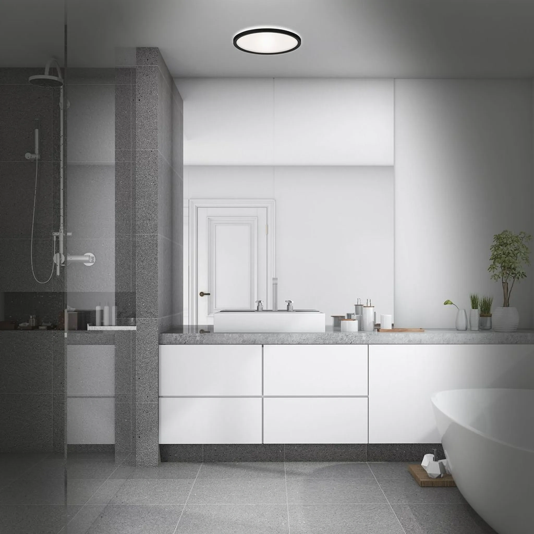 Mit einer flachen Bauweise von nur 3,5 cm Höhe und einem Durchmesser von 29 cm eignet sich die Leuchte optimal für Badezimmer, Gäste-WC, Küche oder Arbeitsräume. Die neutralweiße Lichtfarbe (4000K) sorgt für klare, angenehme Helligkeit. Dank 18 Watt Leistung liefert die Leuchte 2400 Lumen. IP44-Schutz garantiert Spritzwasserschutz für den Einsatz im Badezimmer.