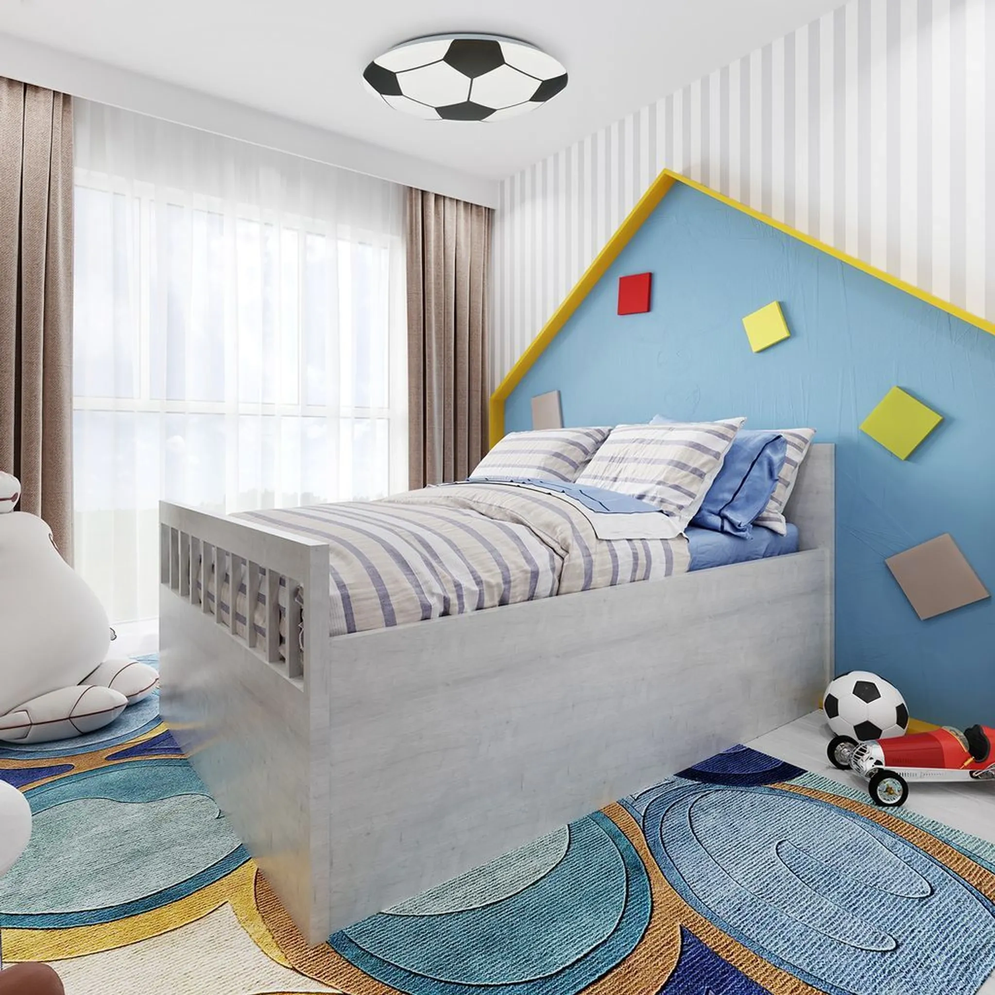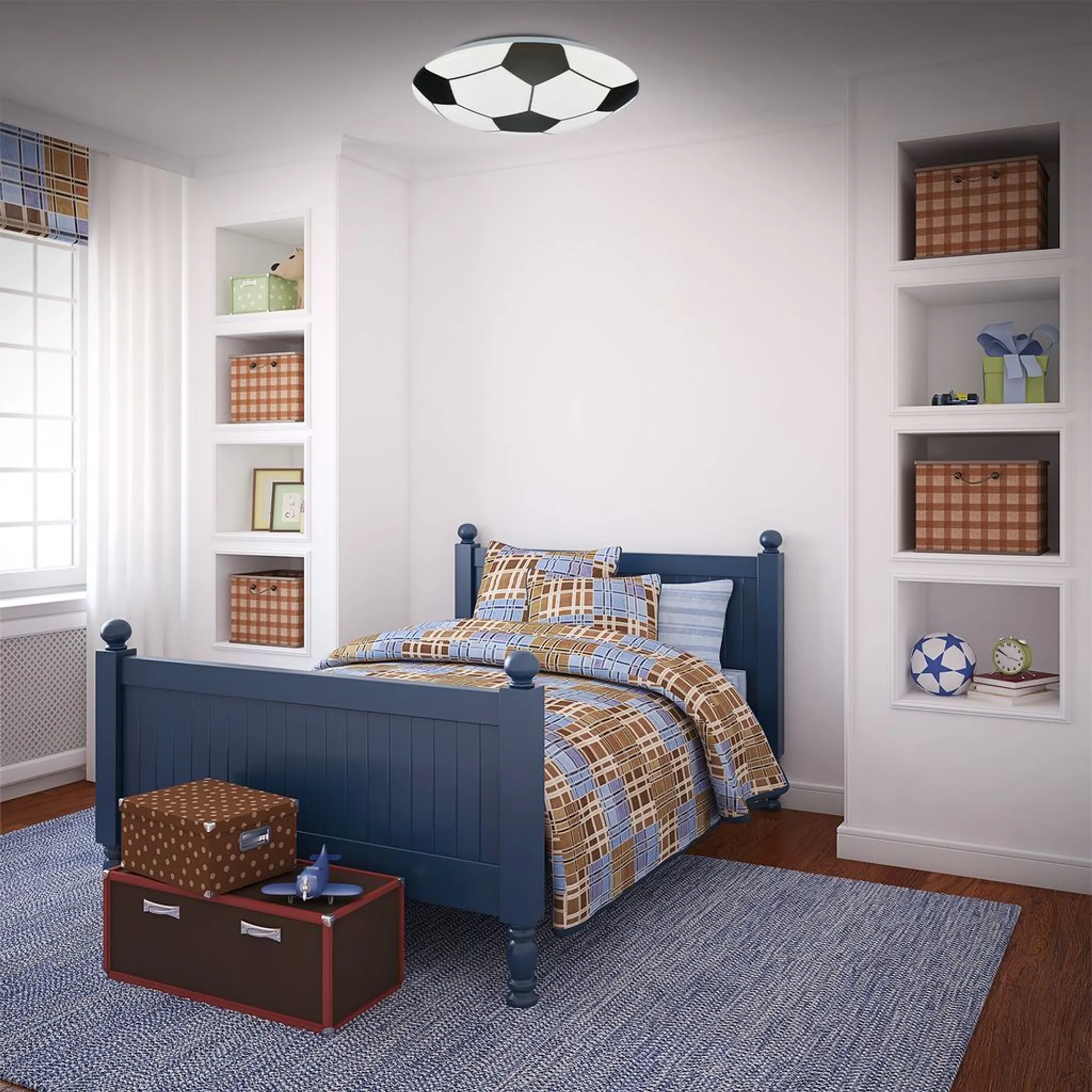 Die runde LED Deckenleuchte in Fußballoptik bringt sportliche Stimmung in jedes Kinderzimmer. Das klassische Schwarz-Weiß-Muster erinnert an einen Fußball und sorgt für eine fröhliche Atmosphäre.