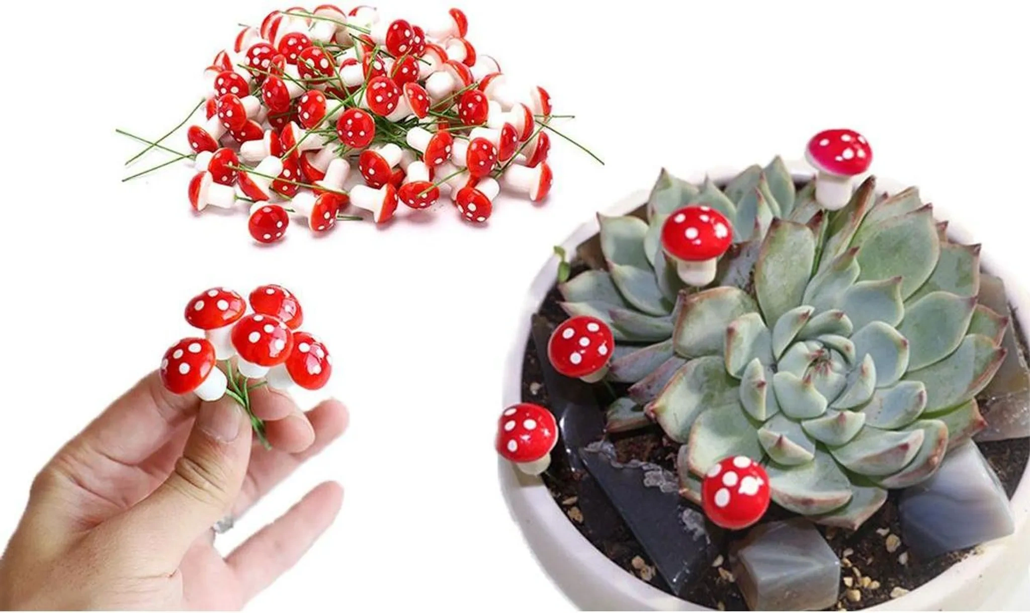 | Im Paket | 16 × Fliegenpilz-Dekorationsfiguren auf Draht |