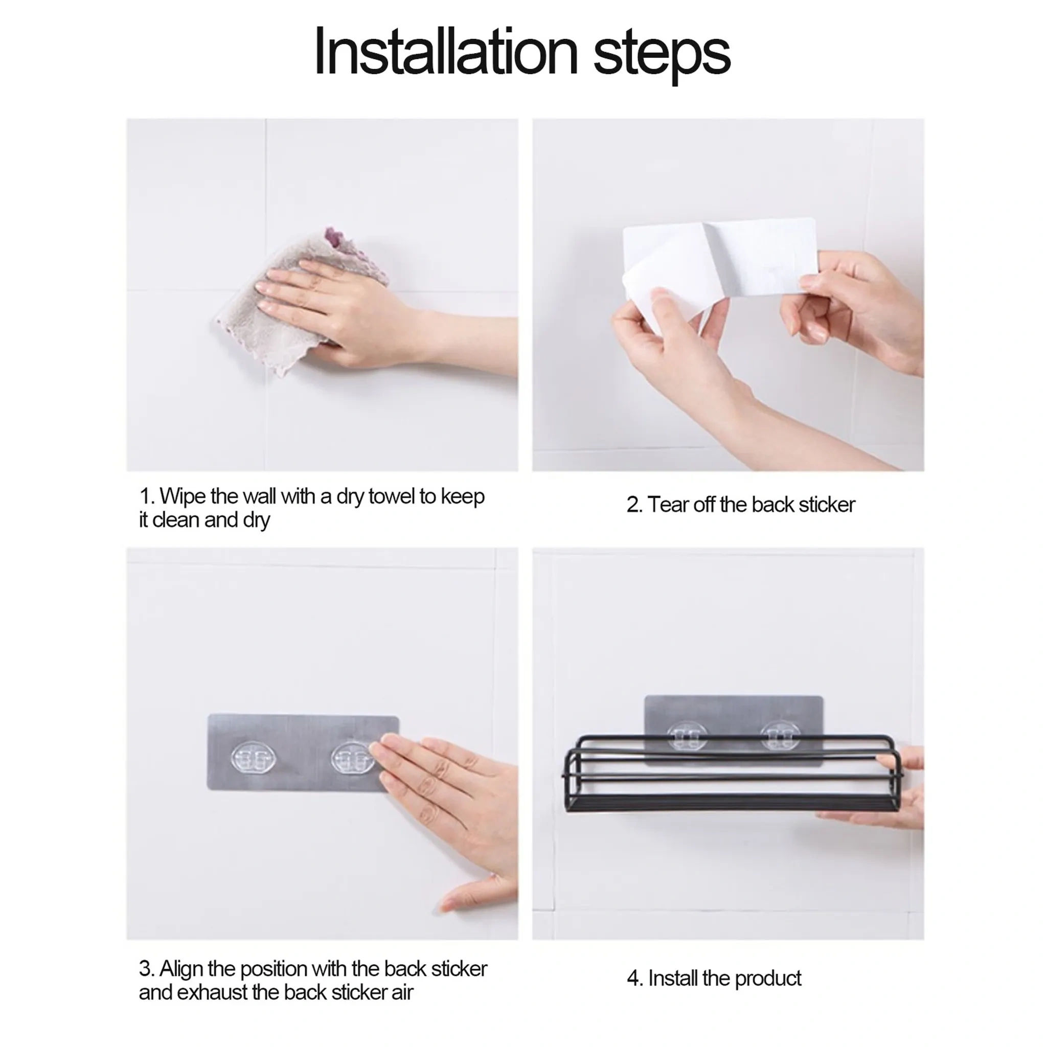Dieses selbstklebende Wandregal aus hochwertigem Metall ist robust, langlebig und eignet sich ideal für Badezimmer, Küche oder andere Aufbewahrungsbereiche. Das Design mit hohlem Boden erleichtert das Ablassen von Wasser und sorgt für einfache Reinigung.
