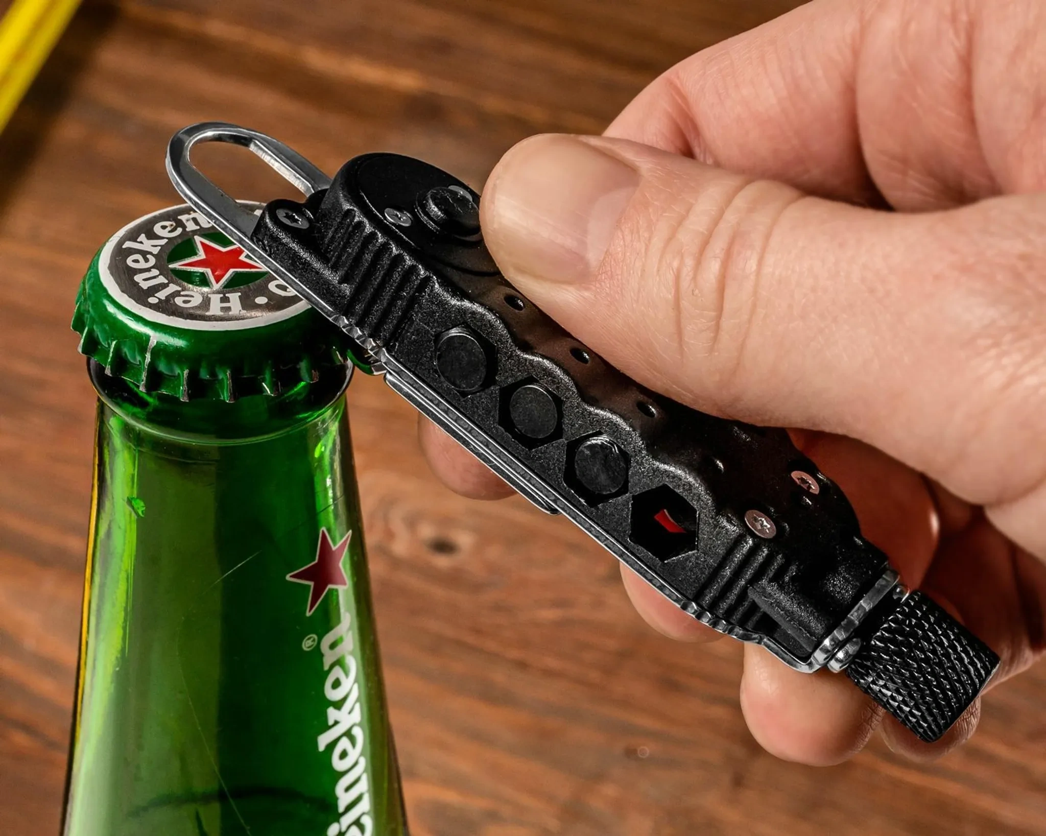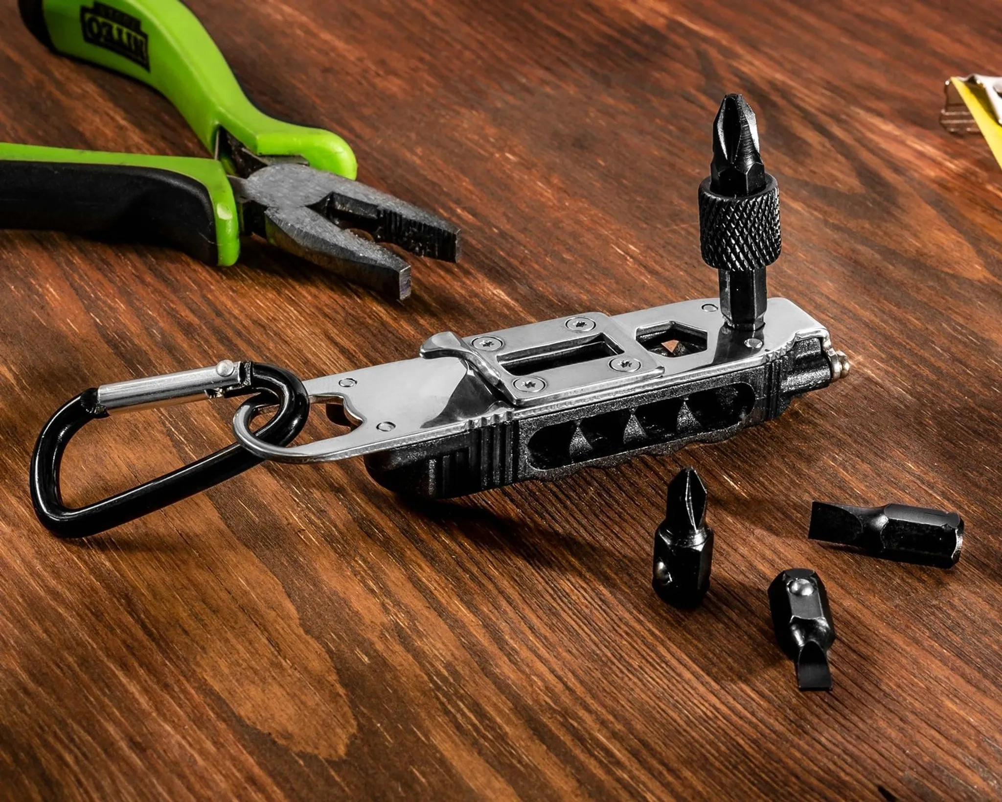 Das multifunktionale Werkzeugset von Gadget Master ist der ideale Begleiter für Outdoor-Aktivitäten, Fahrradtouren oder Camping. Es vereint Schraubendreherbits, 10 mm Schraubenschlüssel, LED-Lampe, Flaschenöffner und Karabiner in einem kompakten, robusten Design – immer griffbereit, wenn schnelle Reparaturen nötig sind.
