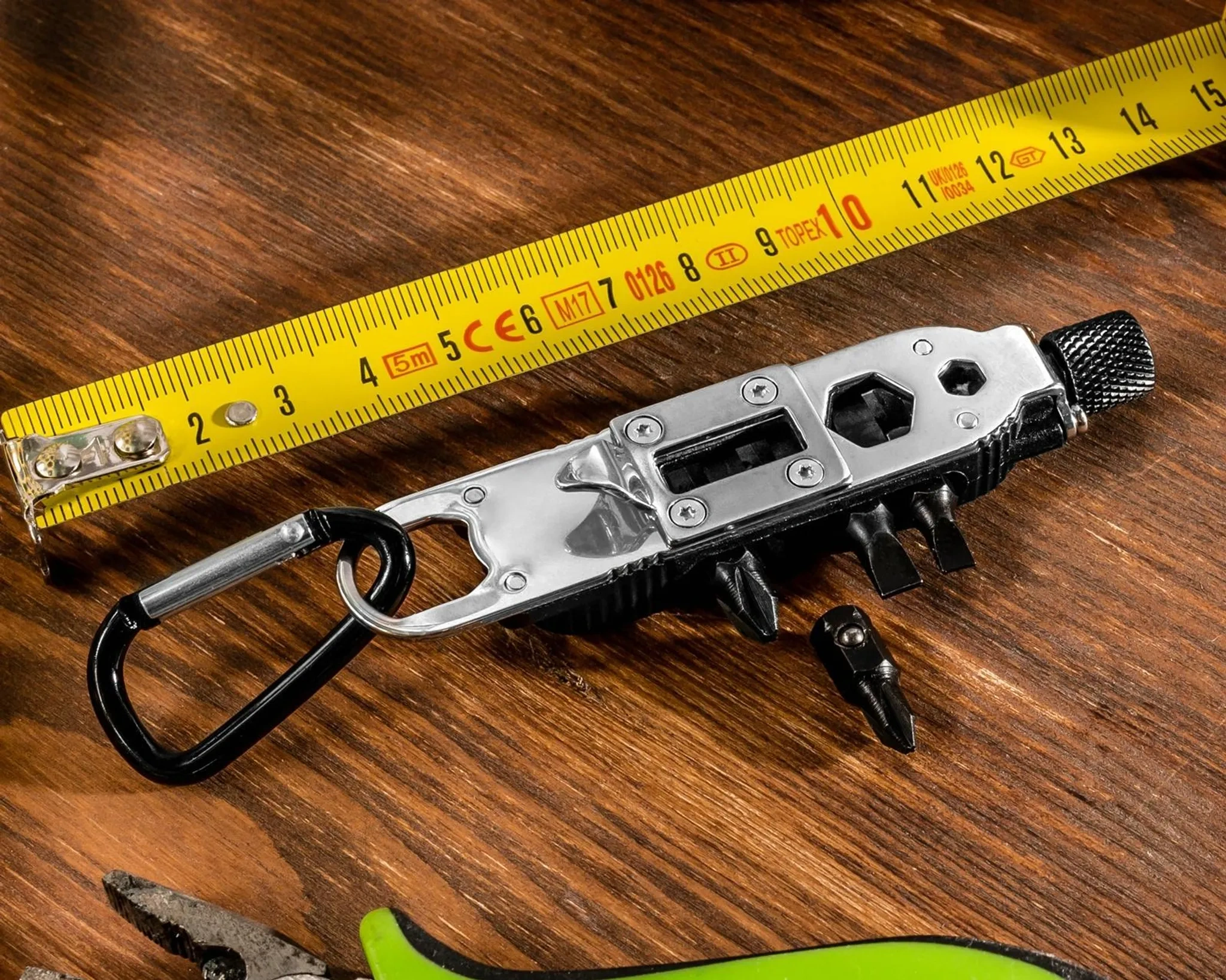 Das Set eignet sich hervorragend als Geschenk für aktive Männer und Abenteurer. Dank des Karabiners lässt sich das Multitool einfach an Rucksack, Gürtel oder Schlüsselbund befestigen. Perfekt für spontane Einsätze unterwegs oder zu Hause.
