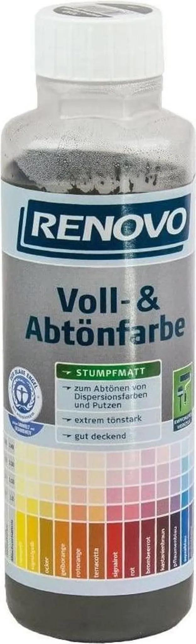Voll- und Abtönfarbe in 500 ml Gebinde, anthrazitgrau, geeignet zum Abtönen von Dispersionsfarben und Putzen. Extrem tönstark, gut deckend, ideal für Innenwände und verschiedene Untergründe.